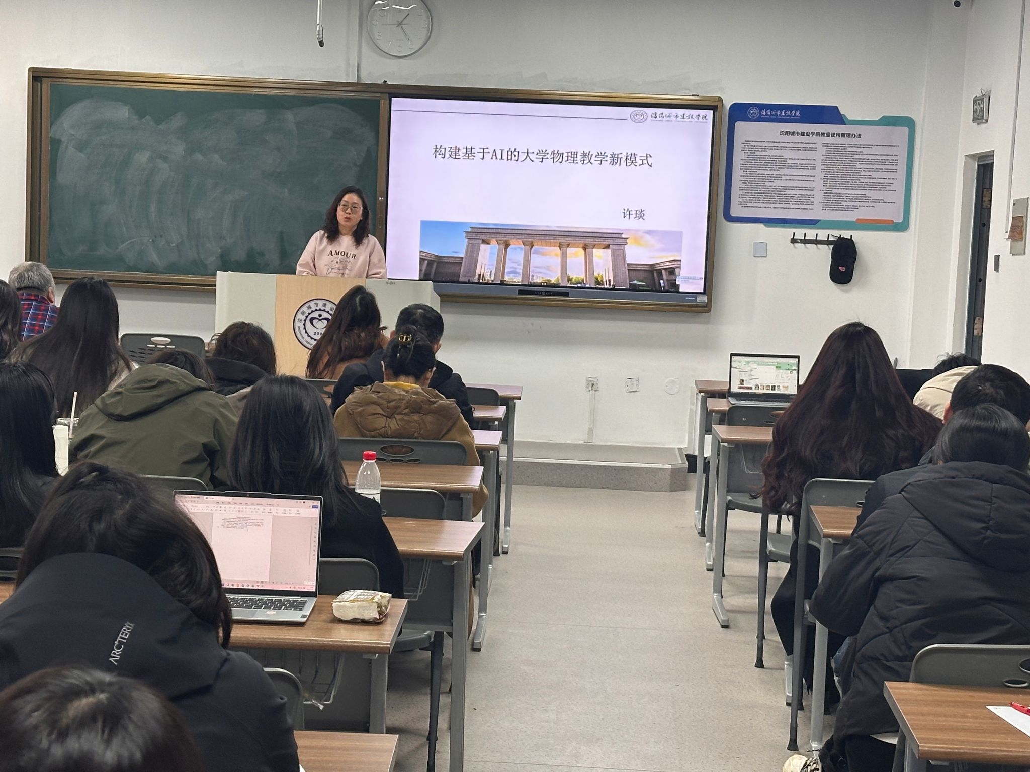 第一位讲解的是邹雨椿老师,她分享的内容为参加青年教师教学基本功大赛的心得和体会。她从六个方面讲解:(1)准备阶段:教学设计;(2)着装、语气、语态语速高低起伏,不能过于平淡;(3)板书设计合理;(4)学情分析:适应学生,符合学生情况;(5)注意比赛要求:无声课堂、没有学生、课堂互动设计;(6) 可以引入学习通。第二位讲解的是许琰老师,她分享的内容为构建基于AI的大学物理教学新模式。她通过三次AI培训总结出自己学习AI的过程,以及对未来工作的安排。
