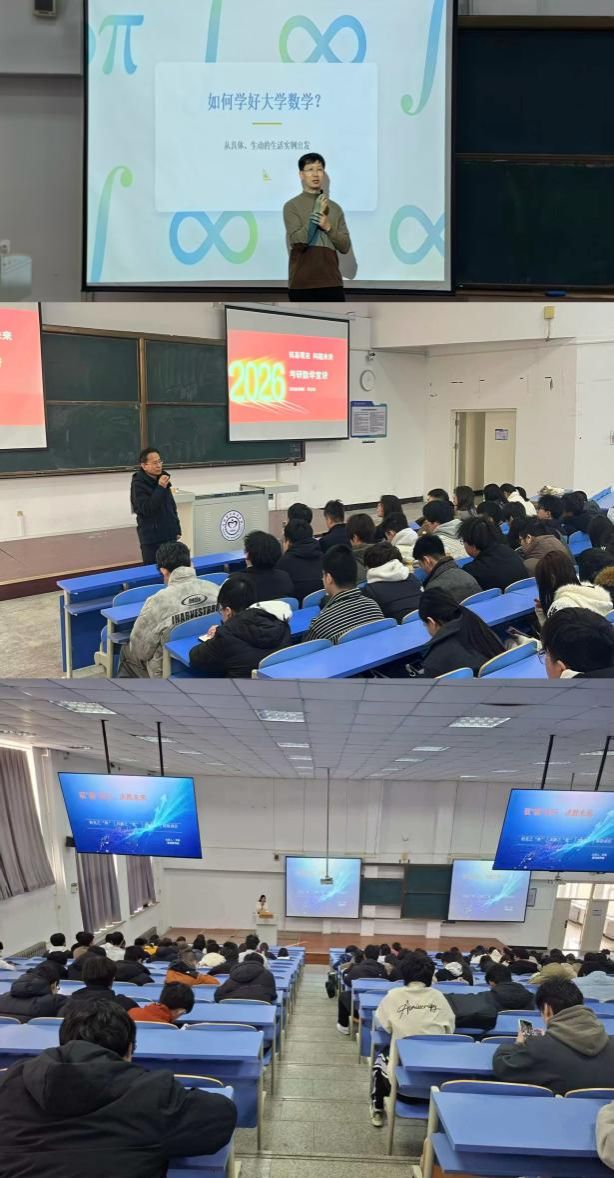 为落实学校考研升学核心工作,帮助2025级学生明晰数学学习重点,树立考研数学备考意识,3月17日下午,2138CC太阳集团分别联合土木工程学院、市政与环境工程学院、信息与控制工程学院、机械工程学院,分场地、分批次开展考研数学备考系列专题讲座。本次讲座由2138CC太阳集团考研数学教师团队的韩志涛、张国林、周末、邹雨椿、陈东宇、尹莉6位教师主讲,2025级超千名学生参与。